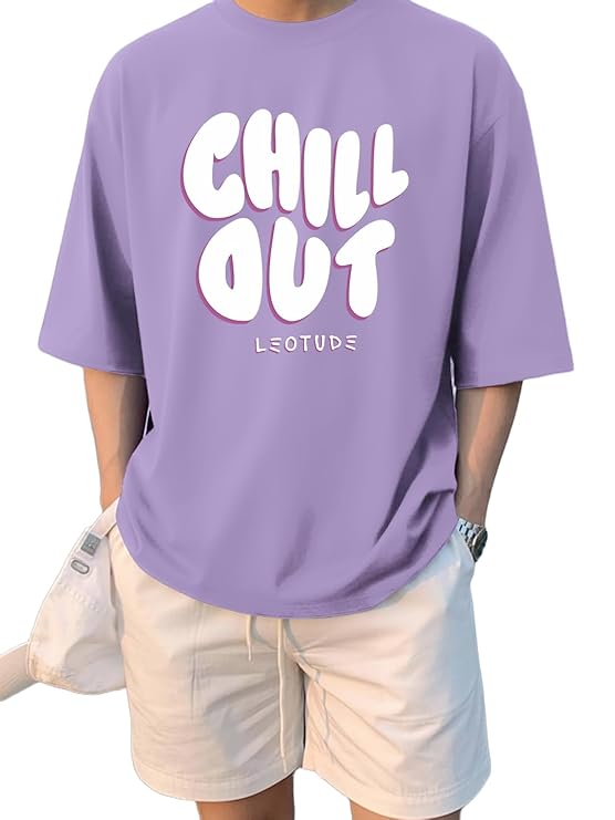 This oversized lavender t-shirt features a casual ?CHILL OUT? print, perfect for lounging, beach days, or casual streetwear.