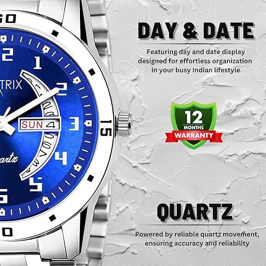 Dial : Blue , Features : Day & Date Functioning, Stainless Steel Shining Strap